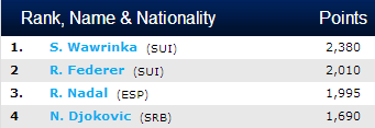 2 Swiss tennis players at the top, probably won't happen ever again. We're so spoiled with these 2! http://t.co/5IIwaHlUqT